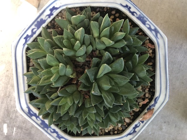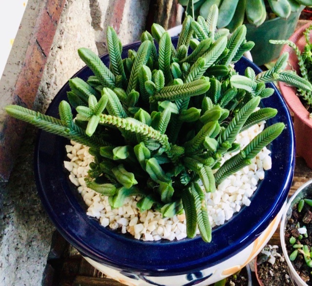 刚从三寸移到六寸盆的青锁龙属的“方鳞绿塔”就要长满了。