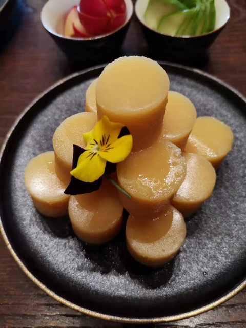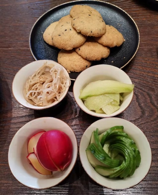 外甥女选了双人餐,有桃酥,冬菜包,花茶和豌豆黄,小菜,冬菜包最著名,我的反应是这包子真高,她说馅特多,有26个折。曾几回首,好久好久没吃冬菜了。