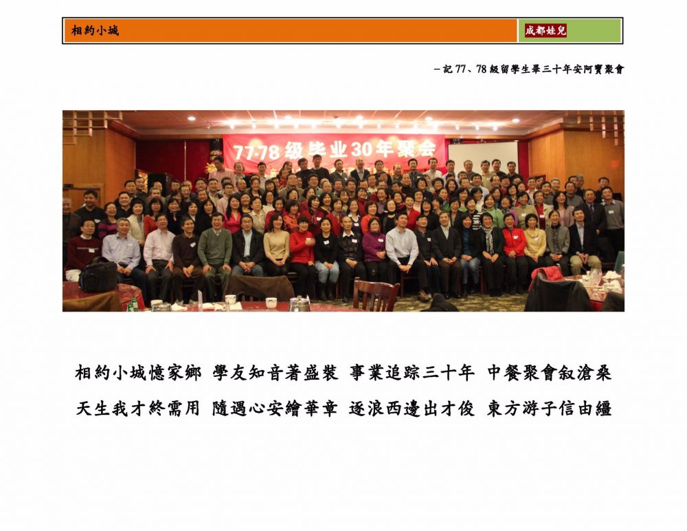 我們參加一次同學會,那不是班級重逢,是一個時代的記憶。我們似曾相識,我們有太多相似的故事,那就是77年的高考,兩百多與會者,帶來了七十多所中國大學的回憶,史無前例的大學生成份和年齡差距,造就許多忘年之交,還有特別的師生關係。