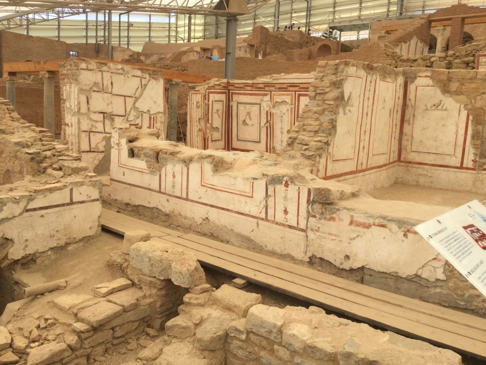 公元六、七世纪,罗马帝国年代,这里建有七栋四千平米二层高级连排别墅。特瑞斯住宅,从房间家具、装饰、布局、壁画,装修过的墙面,到马赛克画面地板,翔实记录了厄法瑟斯上层的生活习惯与社交方式。两间可加热多盆堂私人浴室,大理石地板、墙面和浴池,玻璃窗户和天花板,同样大理石装饰的豪华过厅外加室内喷泉,奢华宴会厅,反映了他们的文明程度与先进技术应用。