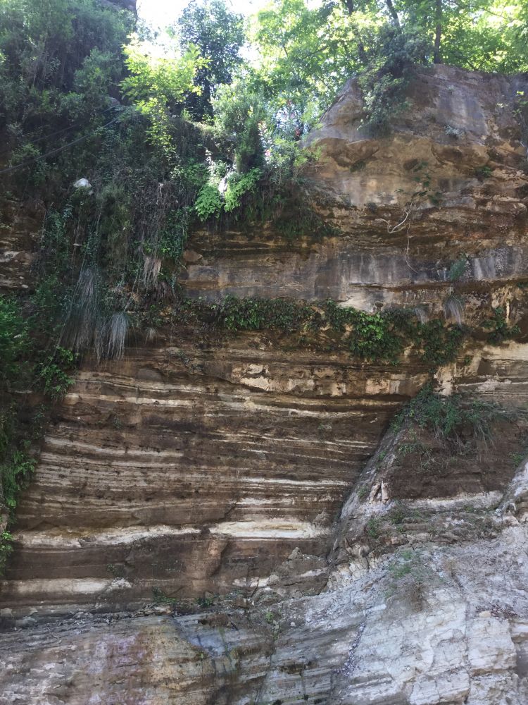 回程我们来到七眼泉,这是一个大漠中的清凉世界,游人不多,难得如此幽静。同伴不愿再多挪一步,顾自找个地方歇息,我和太太则沿林间小道,探访瀑布与清泉。这里真是一个夏日纳凉之好去处,走着走着,便只闻声响不见流水了。越过几道沟壑,在一僻静的山坳里,数十丈高的瀑布终于还是让我找到了,可眼下还是枯水期,只能想像它丰水期的气势。一条细细的瀑布水流从高处落下,抬头望去,犹如天上之水,当我钻到瀑布之下,才发现细水不细,还是有那种瀑底的感觉,浑身上下也让瀑水浇了个透。