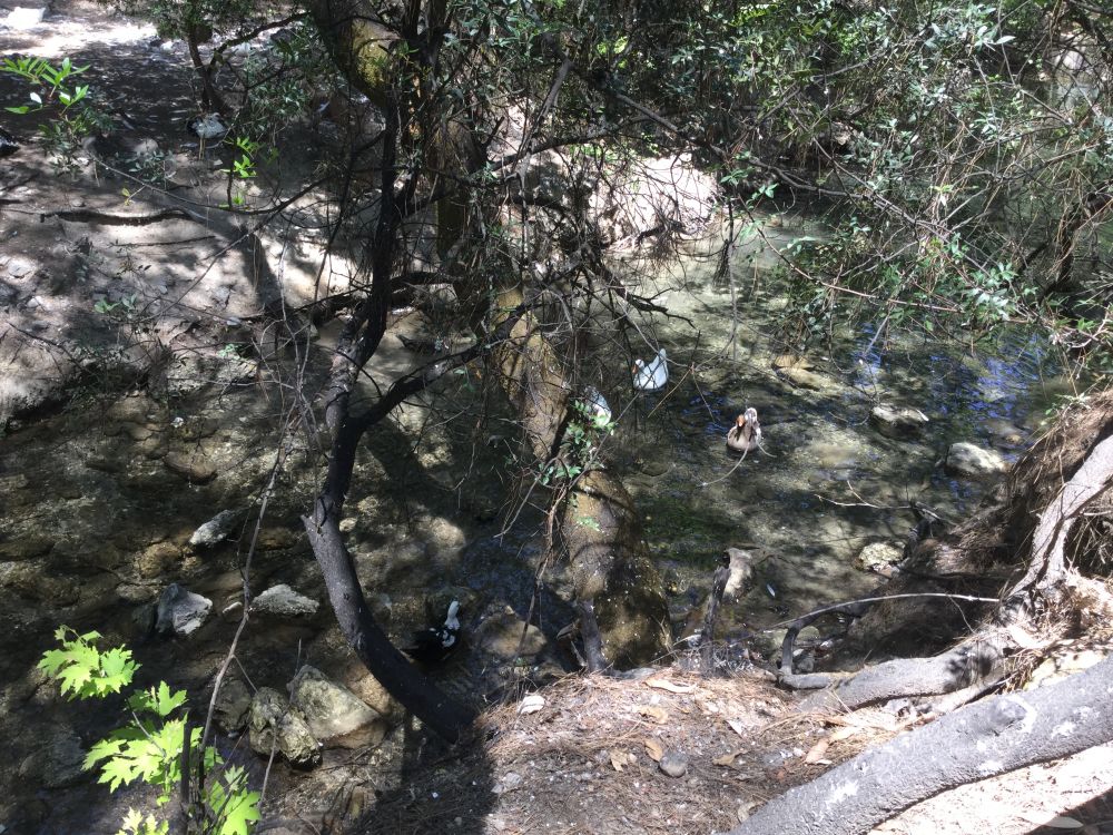 山脚的溪流中,有几只白鸭细水,七八只幼仔也忙碌觅食,一看就是一家子。好看的一对,似乎鸳鸯,悠然自得,勾画出大自然的曼妙,让我联想起无人的峨嵋山景。