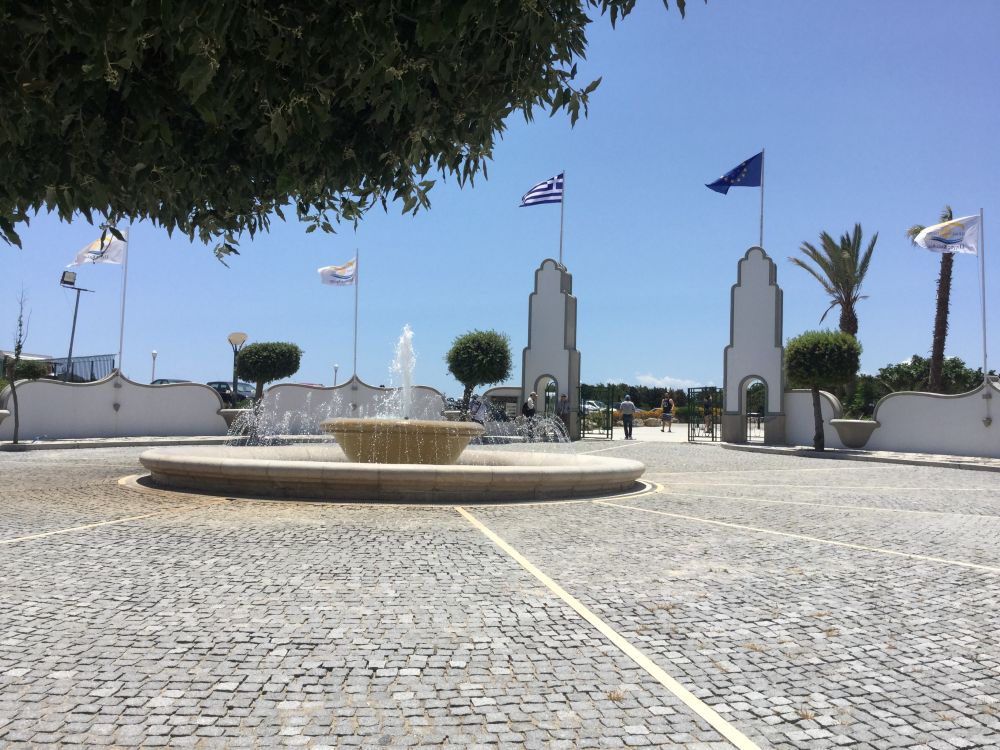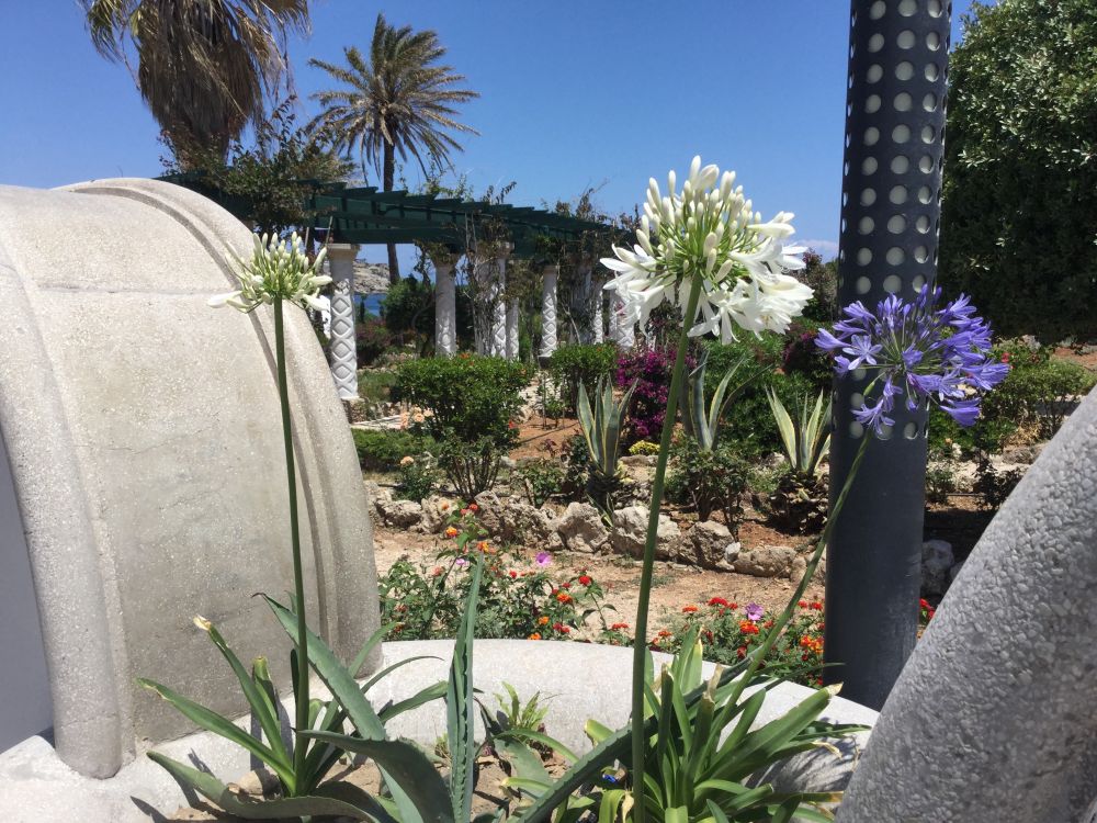 导游司机还要带我们去看一个地方,据说是欧洲土豪自建的一处行宫,白色的矮墙,围了海边一大块地。某某土豪一年也就只来度几天假而已,平时则显得毫无人气。爱琴海岸边,白色建筑依海而建,修剪得体的花园,奇花异草和树木,配上蓝色海湾,相得益彰。我们不属土豪,进不得院墙之内,只在花园内倘佯一会儿,体会体会土豪们的生活。