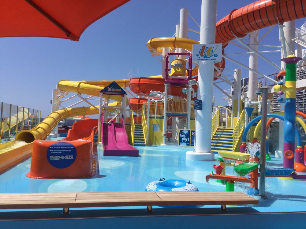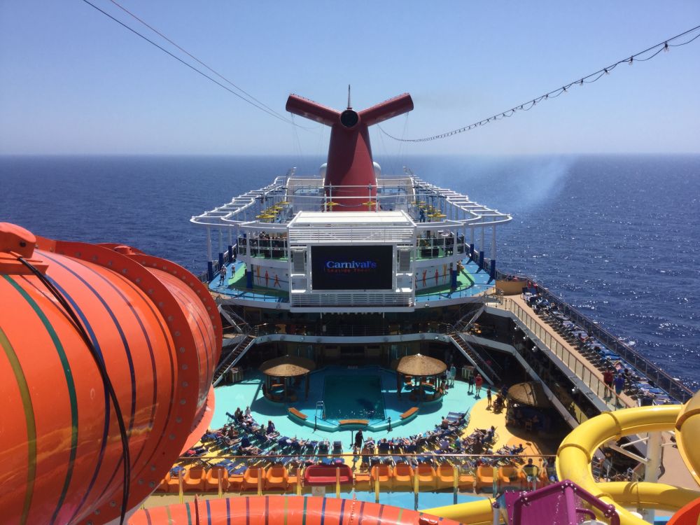邮船离开罗兹,接下来一段长距离巡航,由地中海东部向西而去,到下一站马耳他的航程,估计需要一天,嘉年华邮轮公司管这一天叫,海上乐。我们也可以好好细看这艘两星期前才下水的新船。