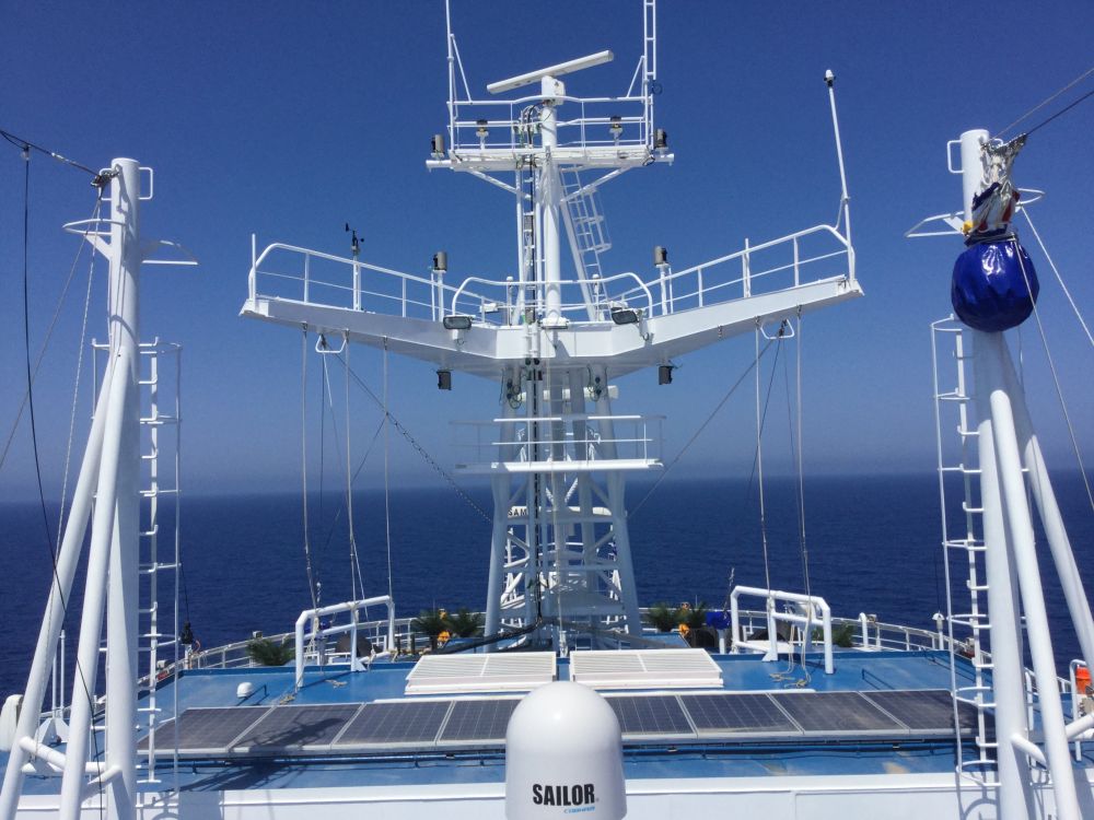 维斯塔,排水量十三万三千五百吨,载客约五千名,二零一六年五月一日处女航。我们的航海之旅,正是它第三次遨游地中海。维斯塔还将继续在地中海游弋,十月份它将横跨大西洋,来到纽约,接下来约一年时间,加勒比海将是它漂浮的水域。