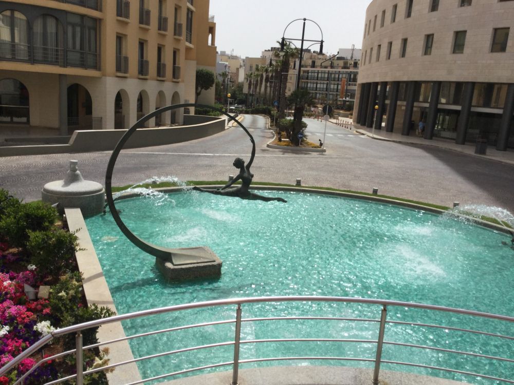 马耳他也以海滨的沙滩闻名,敞篷观光车带我们到乌莱塔北郊的金色海岸转了一圈。有人裹着浴巾上车落座,旁观者询问水温如何,据说还是偏凉。金色海岸附近建了不少酒店供旅游者下榻,也有一些公寓,是某些富人的行宫。