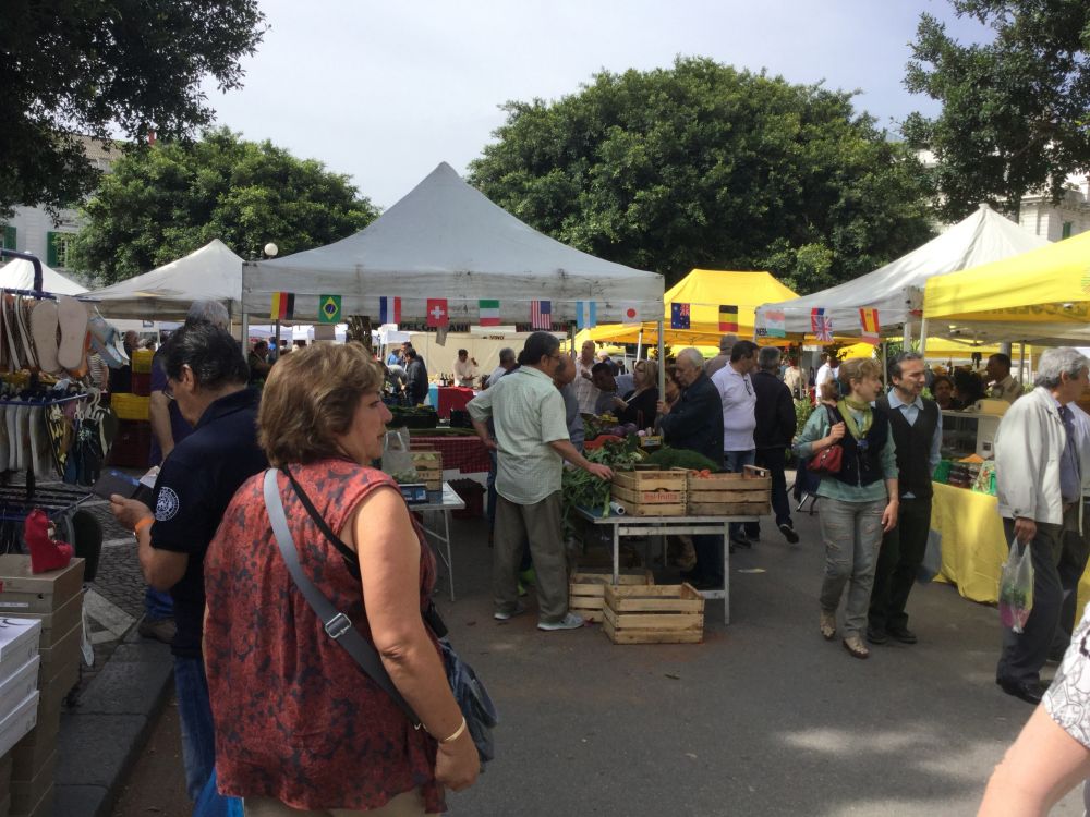 集市热闹非凡,蔬菜、水果,花卉、字画,挂件、首饰,日用杂货,应有尽有。果蔬新鲜,并且价廉,太太买一公斤柑橘只要两欧元。朋友购一大袋枇杷,也没花多少银子。