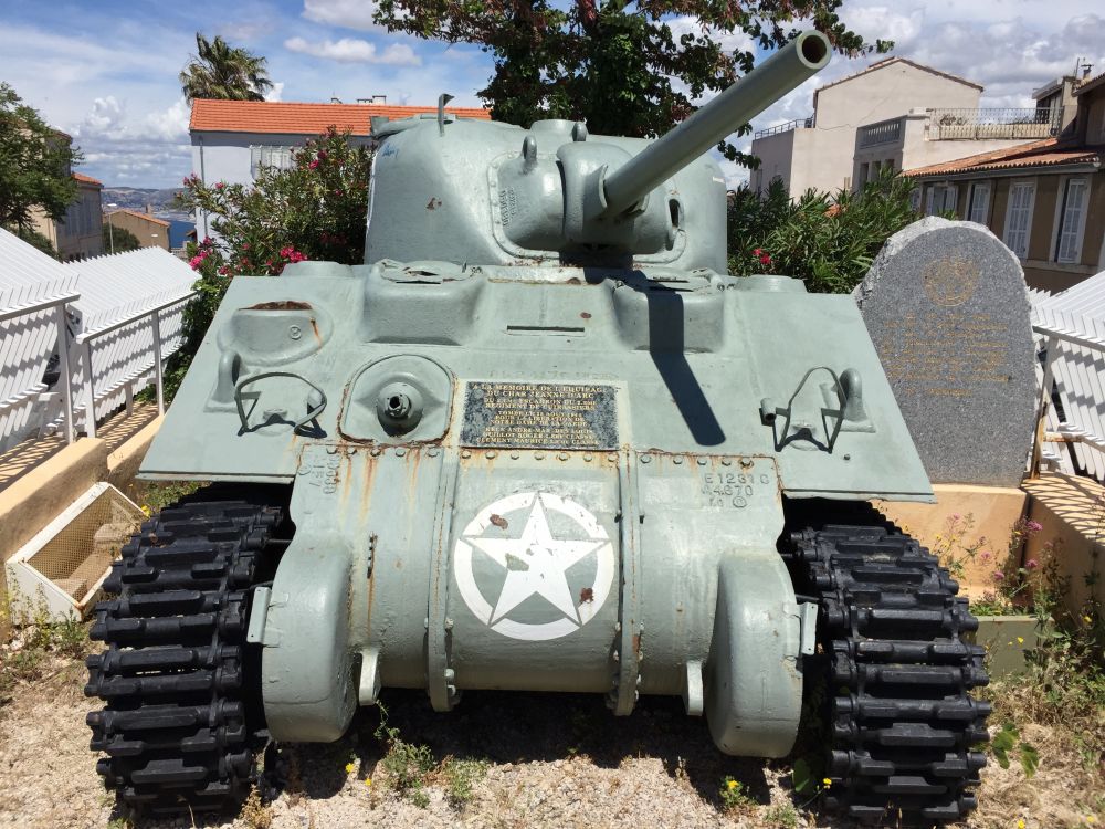 参观完毕,回到半山腰车站等候下一班观光巴士。我顺便往旁边的民居附近溜达溜达。岔路口,一辆盟军坦克埋伏在此,炮口直指鹿特丹大教堂,仿佛仍有纳粹匿藏抵抗,从车身一枚白色的五星标识不难判断应该是美军装备。细看才知,旁边一个纪念牌道出这段二战史话,这是个意外发现。