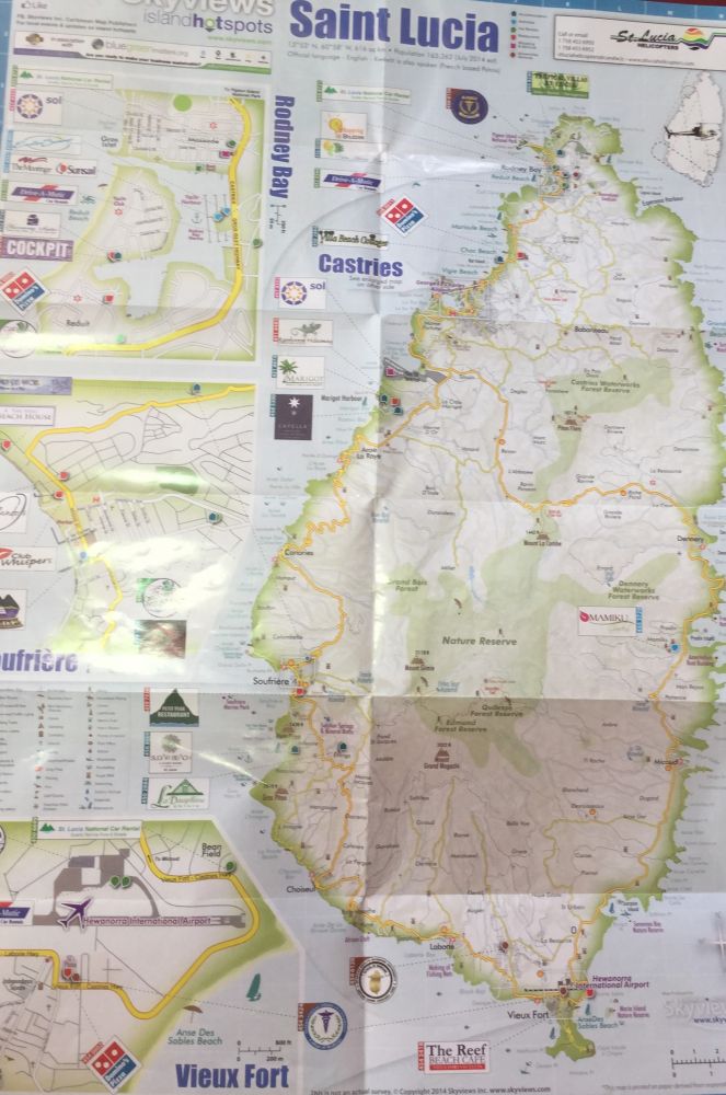 郵輪一靠岸, 我們如法炮製, 下船上島, 馬上與導遊們談生意, 希望能有一個不錯的價碼, 好環島自駕一遊, 看過租車公司窗口的出租車價格和地圖才知自駕不現實。登船時間在下午五點, 我們時間有限, 就算路熟也不可能跑完全島。一邊查看借來的地圖, 一邊考慮合適的旅遊線路。詢問當地人, 最好的沙灘在哪裡, 說是北面的鴿子島。根據時間舍遠求近, 先去南邊的蘇弗里耶爾, 再折回北上鴿子島。