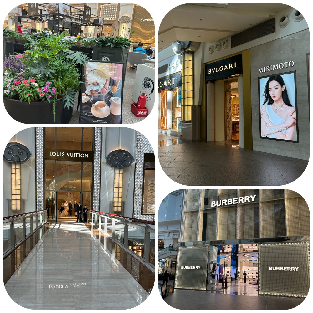 逛奢侈品店,處處有在亞洲的感覺,店門口的服務員九十度的鞠躬,讓人渾身雞皮疙瘩。跟屁蟲般的產品介紹,過度服務,非常令人生厭。在台中大百,在高雄85,在台北101,千篇一律,只能歸為亞洲風格。