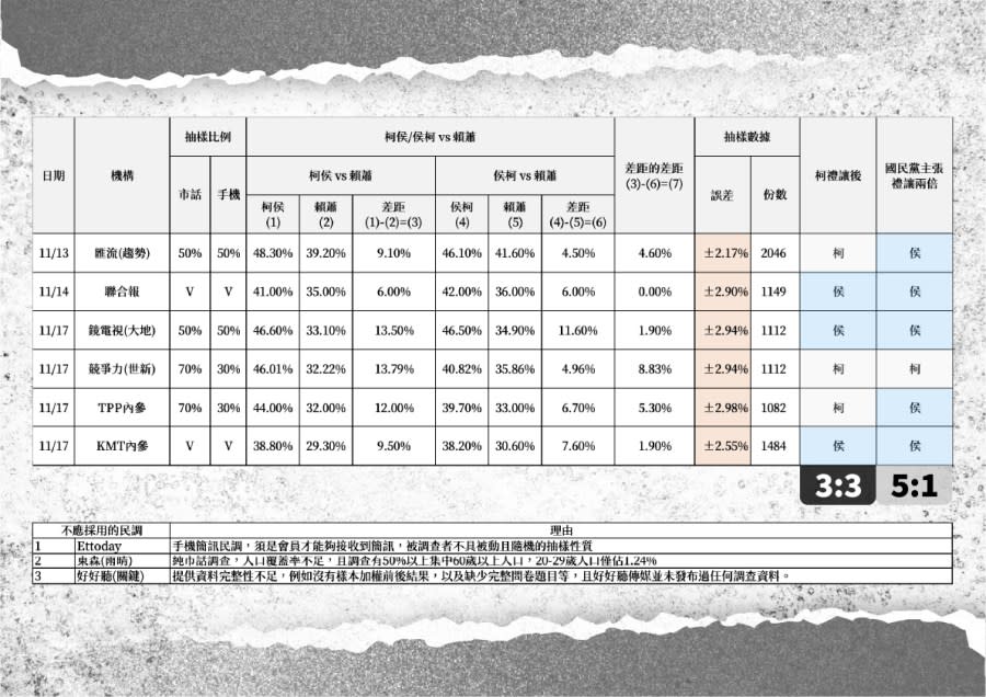 民眾黨認為結果是 3:3,國民黨認為是 5:1 候友宜勝。