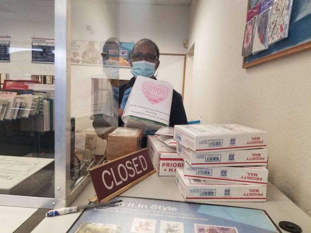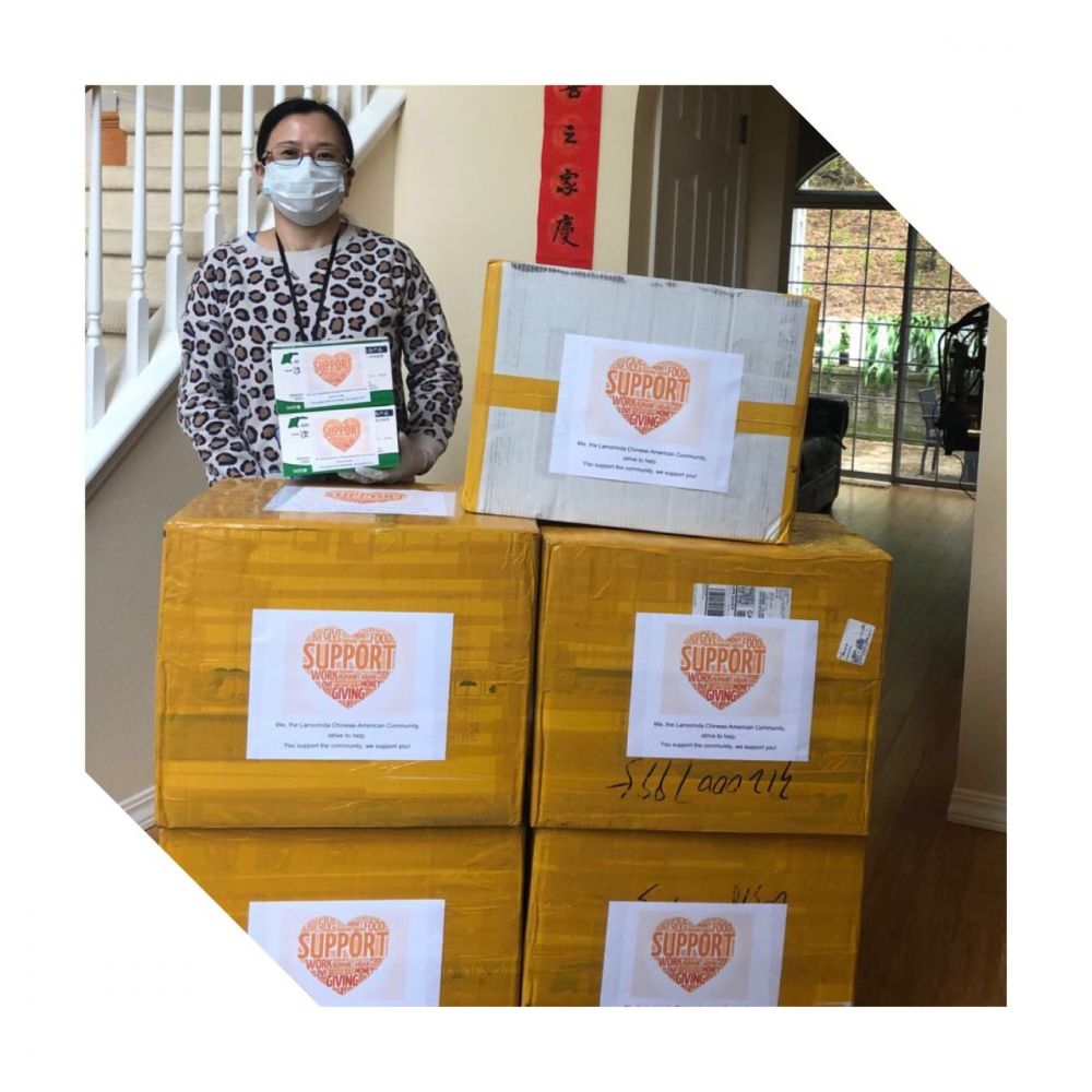 (当YanHeim 把口罩送到邮局的时候,前台工作的人看见她手里拎着包裹就问她是不是要邮寄包裹?当她回答:我是来捐赠口罩的。所有排队的人都惊呼了起来,其中一个人大声说:你是谁?你一定是上帝派来的天使!邮局接收的人更是感动的说:太谢谢你了!你送来了及时雨!你叫什么名字?回答是:我叫什么不重要!我是 Orinda 的居民,这些口罩是我们 Lamorinda 热心的华裔居民一起筹款购买,捐赠给还在为我们服务开业的店铺和机构的。)