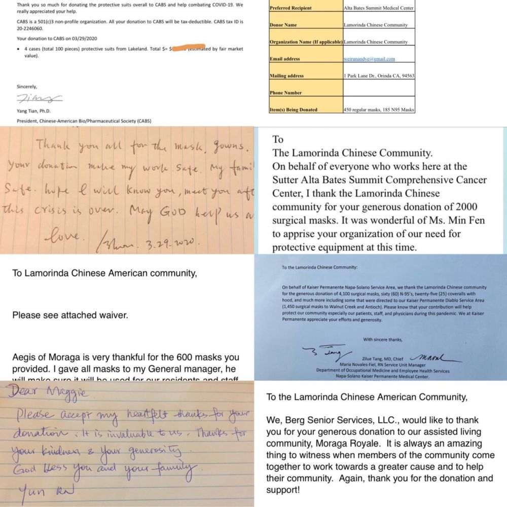 这次美国疫情,已经有中国疫情前车之鉴的海外华人对疫情的防范是慎之又慎!各地华人奋起抵抗疫情已经成为了美国各族裔里反应最迅速的主力军!旧金山湾区有很多社团、同乡会组织发动捐款捐口罩的活动比比皆是。但是由邻里之间自发组织的捐款捐口罩送到医院和社区公共机构的事情还是不多见的。他们并不为名利,他们只有一个最朴实的愿望就是希望大家都安好无恙!他们对社区的爱护和建设如润物细无声一般,用最平凡的样子在树立华人社区的形象和价值观!