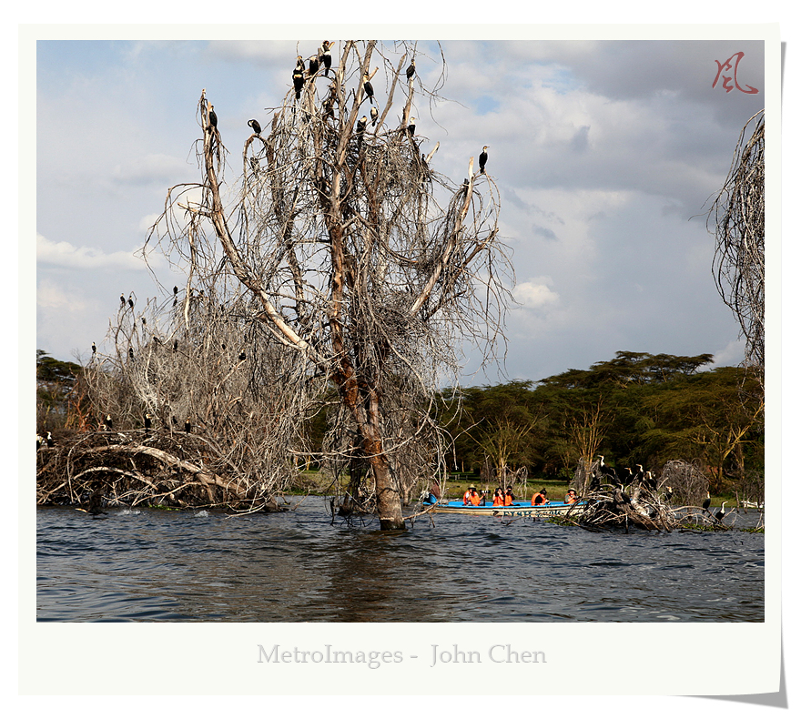 此行第一站,就是被誉为肯尼亚最美的湖泊 LakeNaivasha,纳瓦沙湖是肯尼亚唯一的淡水湖,坐落在东非大裂谷之内。湖中水产丰富,湖边有大片沼泽,滋养了上百种的水禽,还有数目可观的河马。小船一直将我们送到湖中的一个半月形小岛,名曰“新月岛”,岛的四面环水,成为一个私人动物保护区,岛上没有凶猛动物,仅有长颈鹿,斑马,角马等温和的小动物。岛上风[