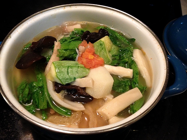 白色的是山药和杏鲍菇。可用罐装鸡汤或鸡精调味,不放油。