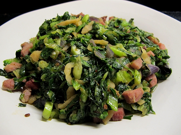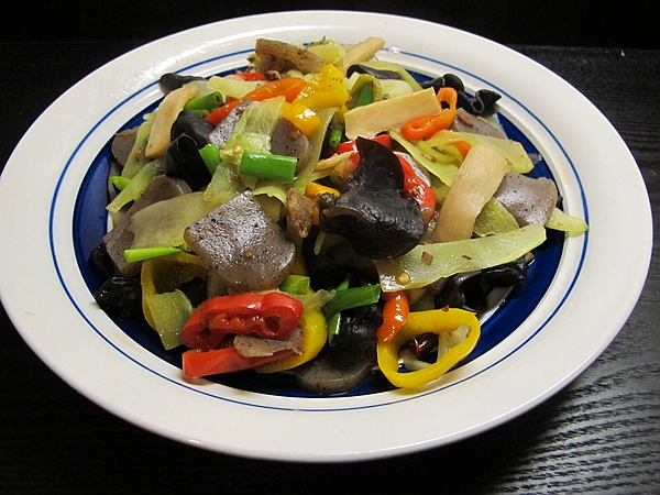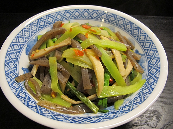 莴笋最家常的做法就是清炒~~~用干辣椒呛了锅,加了点美国火腿,山药木耳: