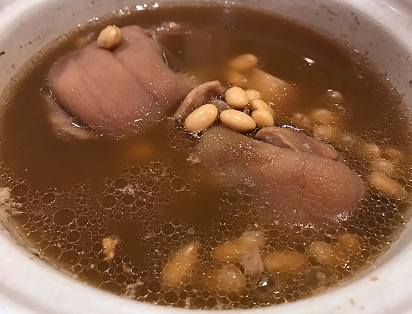 把泡了一天的黄豆也倒入慢炖锅,加水到快满,再加几片姜,两大勺料酒,一勺酱油(可以不加)。盖上盖子插电源,睡觉去~~~第二天早上醒来就闻到香味了:)