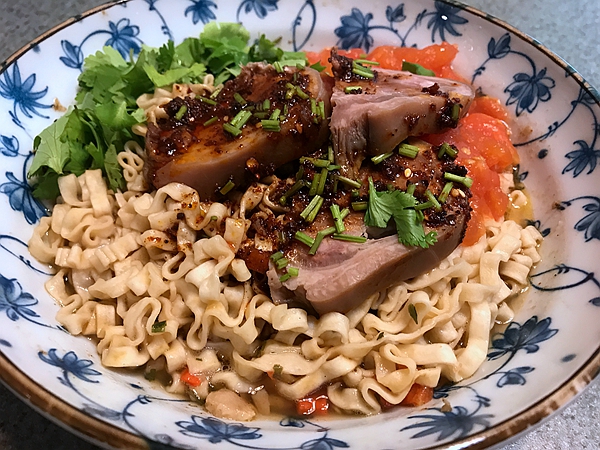 炖好的肉放冰箱,中午回来切片,调个麻辣汁浇上去:)