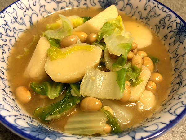 到网上买发芽黄豆时,卖家搭了一包不发芽的有机黄豆。除了做水豆豉,还没想到其它方便的吃法。先炖汤吧~~~早上量一杯,用清水泡上: