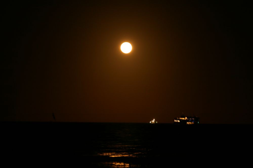 海和天融成一团浓墨几艘零星的船在远处显示天际渔灯闪闪烁烁仿佛在述说什么黑暗中的海神秘而充满诱惑