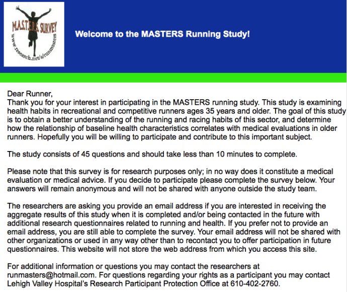 "Evaluated data from more than 3,800 men and women runners, average age 46."