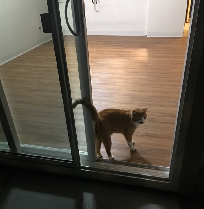 我家后院是封闭的,四周全是一人多高的围墙。ADU 已租出去了,后院通往ADU的通道也由一扇高高的院门隔开,现在猫走路都东倒西歪,绝对不可能翻越这高高的院门,去到 ADU 前面的走道,然非常神奇,极其令人百思不得其解的是,过一会猫的叫声竟然从 ADU 前面的走道传来,老婆过去看看,发现猫正趴在 ADU 门口边“哎哎”地叫着。