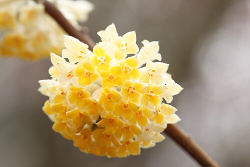 结香在日本是高雅昂贵的树种,日本叫“Mistubata”,汉字写作“三枝”,“三又”(三叉),开红橙色花的叫“赤花三椏”(akabana mitsubata)。