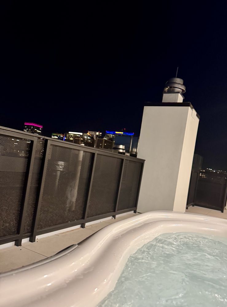 晚上住在一个小资的酒店公寓,每个房间外面竟然还有一个jaccuzi。和爱美丽两个人泡了泡,听爱美丽说她上次自行车比赛,怎么和一个小男生组成联盟,呵呵。