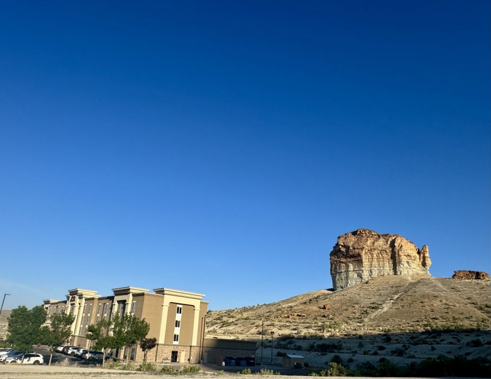 昨晚住的旅馆,后面是巨石。吃早饭之后就可以看到,很壮观。