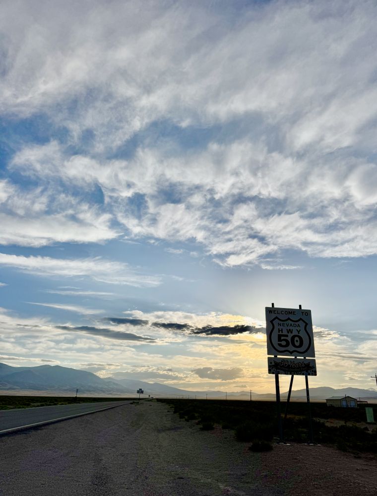 沿着50号公路开。这条公路号称是the loneliest road in America. 真的是一百多英里的一望无际的寂寥。我倒是很喜欢。非常符合文青们的忧郁情怀。曾经有一个自行车骑行,就是沿着50号公路骑车,号称是the loneliest ride in America. 我以前很憧憬这个骑行,差点参加了,呵呵。