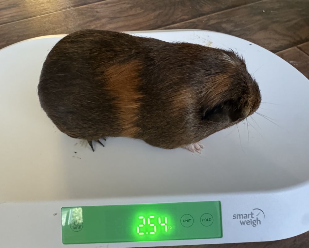 两只老鼠,一窝生的,一个2.54磅,一个1.94磅。看上去就能感觉到一只明显比另一只大。吃东西的时候,也是那只大的抢在前面,小的就只能等在后面。