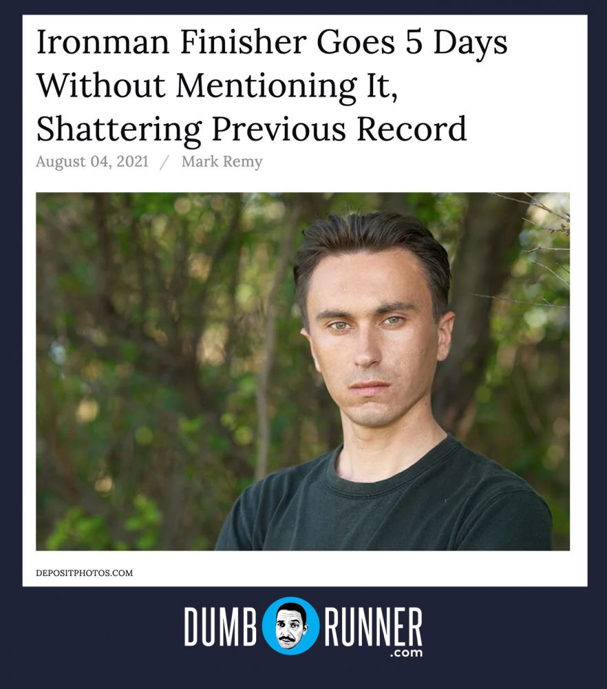 昨天看到这个图片,说这个人五天没有提及自己完成大铁,打破了纪录,笑死我了。赶紧找出我珍藏的这张图片,使劲不让我是铁人这句话插入到每个conversation中。哈哈。
