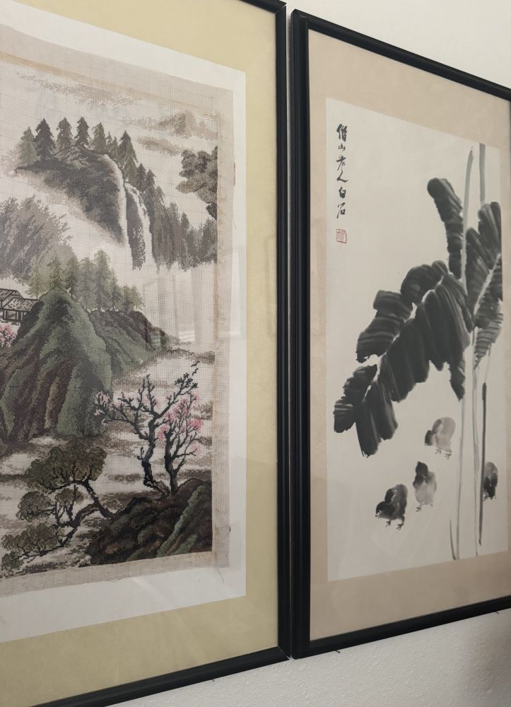 昨天和爸妈逛estate sale,妈妈看中看到两幅字画,不是因为字画,而是因为她想要那个镜框,放自己的十字绣,呵呵。