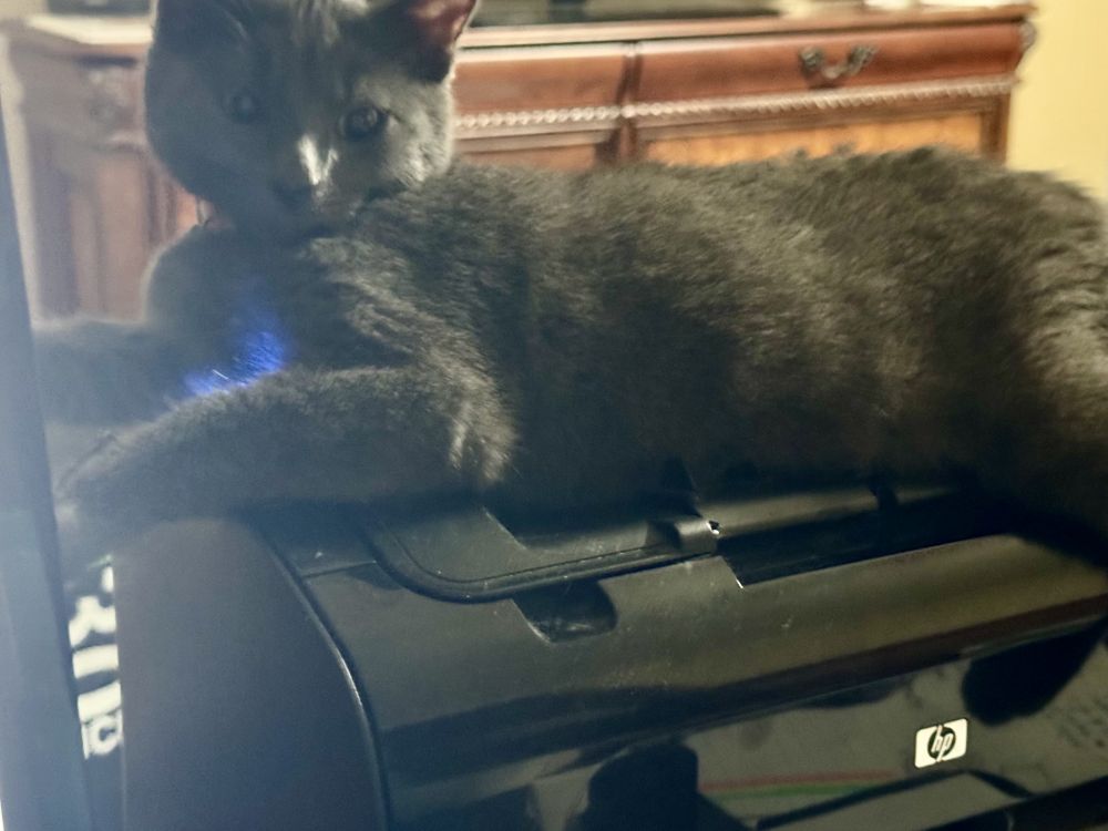 最近一只猫儿子觉得打印机很有文化,我做事情的时候,他就总要坐在那上面,满腹经纶的样子。