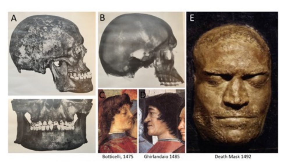 这个疾病现在非常容易诊断,但是在Lorenzo那个年代却是不可能的。 几幅肖像和他的死亡面具说明了他面部形态的变化,可以清晰看到他的面部特征随着时间的推移而变粗,包括前额颅骨隆起、鼻子扩大、眉毛突出、嘴唇变厚和法令纹和下颌前突,这些都是支持肢端肥大症的诊断。