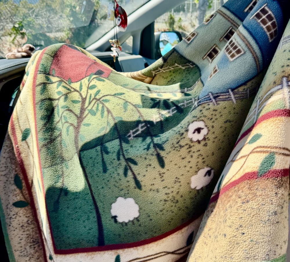 回来时候,看到我的驾驶座位,盖着一条毯子,应该是爸妈怕我的座位被晒的太烫。