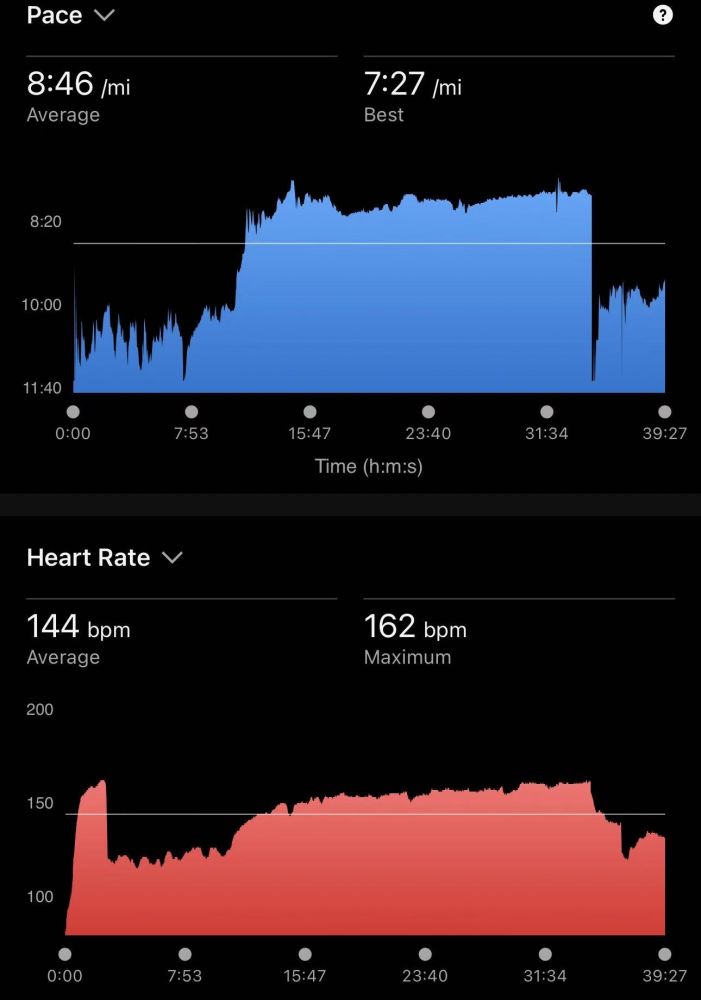 今天手表抽风,我第一英里慢跑,心率竟然飙到150-160,有时候会有这样的情况,特别是天冷的时候,然后慢慢会自己降下来。很讨厌啊,这样的数据,会影响我的vo2max和跑步performance数据,试想,这么慢的速度,心率这么快,garmin会觉得我非常不fit。
