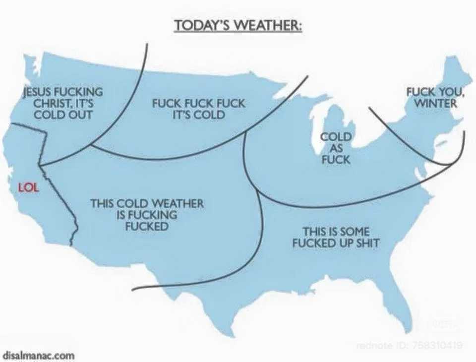 在一片Fxxk 的极寒天气中,加州笑傲俯视。