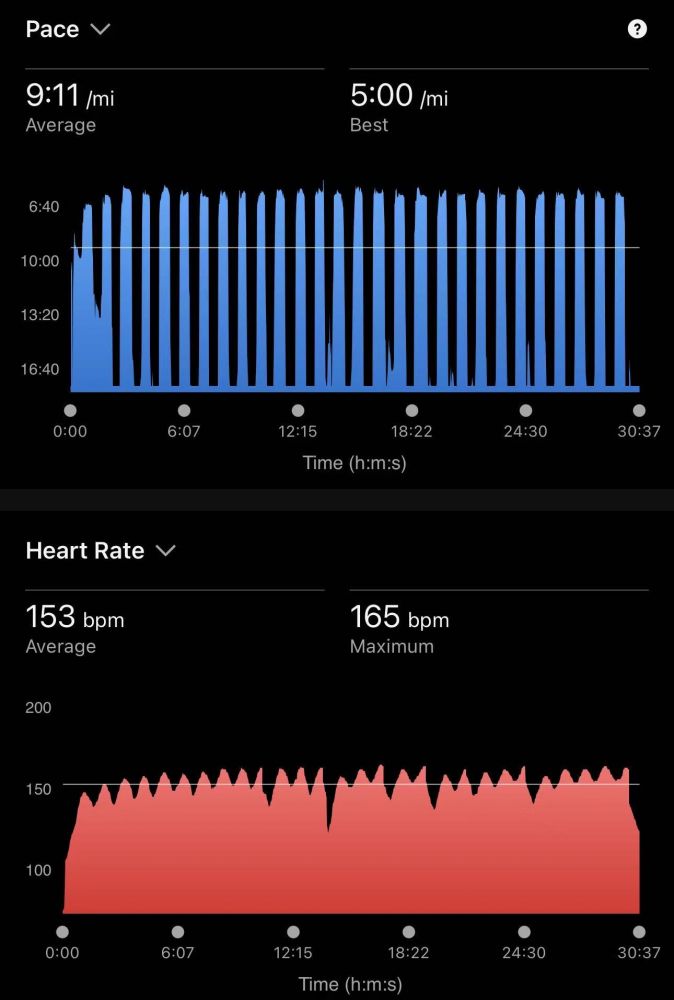 今天早上是interval。短短的。不算很虐。和我砸球正好是一个节奏,三十秒on 三十秒off,砸球心率可比这个高了。