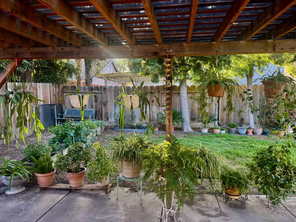 晚上吃完晚饭,爸爸非常骄傲地带着我参观他的植物园。到处繁花锦胜,绿意盎然,晚风习习,真的很舒服。