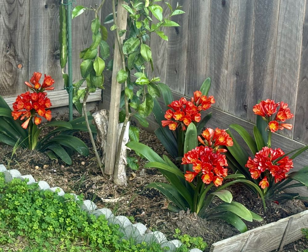 爸爸特别给我看花园一角君子兰。他说今年君子兰开得特别繁茂,是个好兆头。