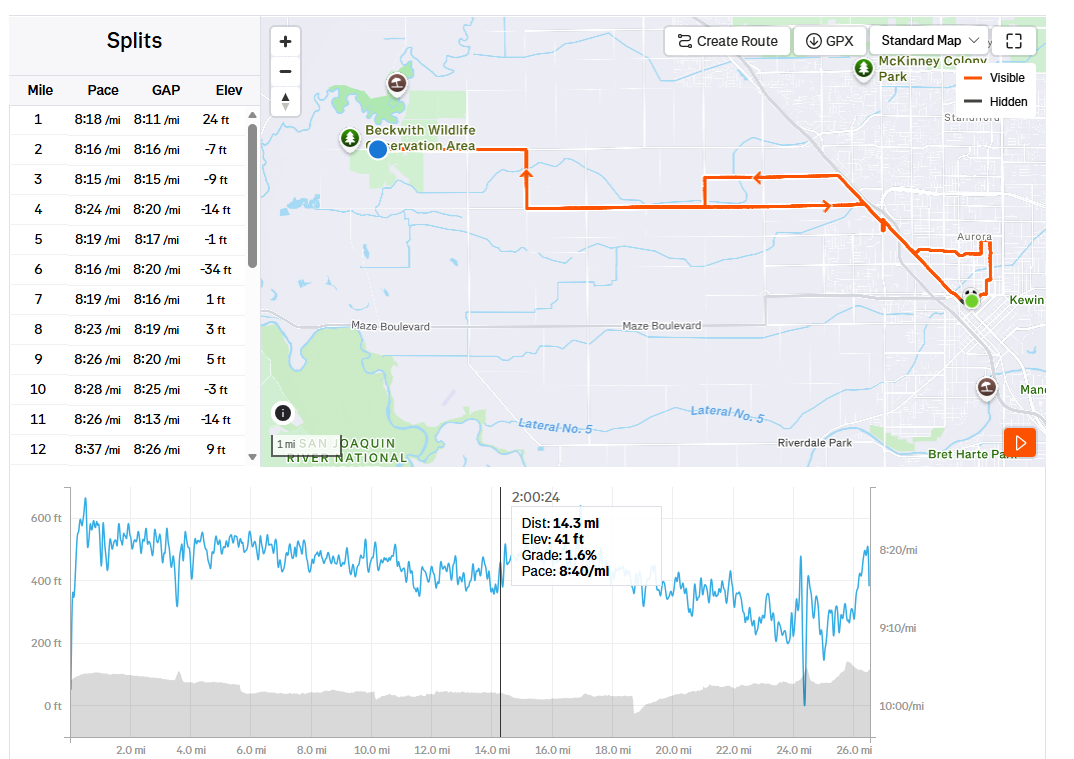 我把我的strava做了一个截屏,大家可以看到折返点在14英里处,也就是说这个人至少少跑了两英里!他时候说他的strava显示26.4英里,如果真的如他所说是因为follow lead bike出错,他绝对不可能跑到26.4英里的。