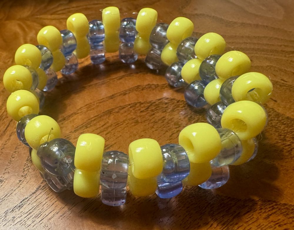 前几天我看到床头放了一条新的手链,她说是给我的波马做的蓝黄相间的。哎呀妈呀,老母亲的新瞬间融化。啥梵克雅宝,都比不上我闺女的这一片心。