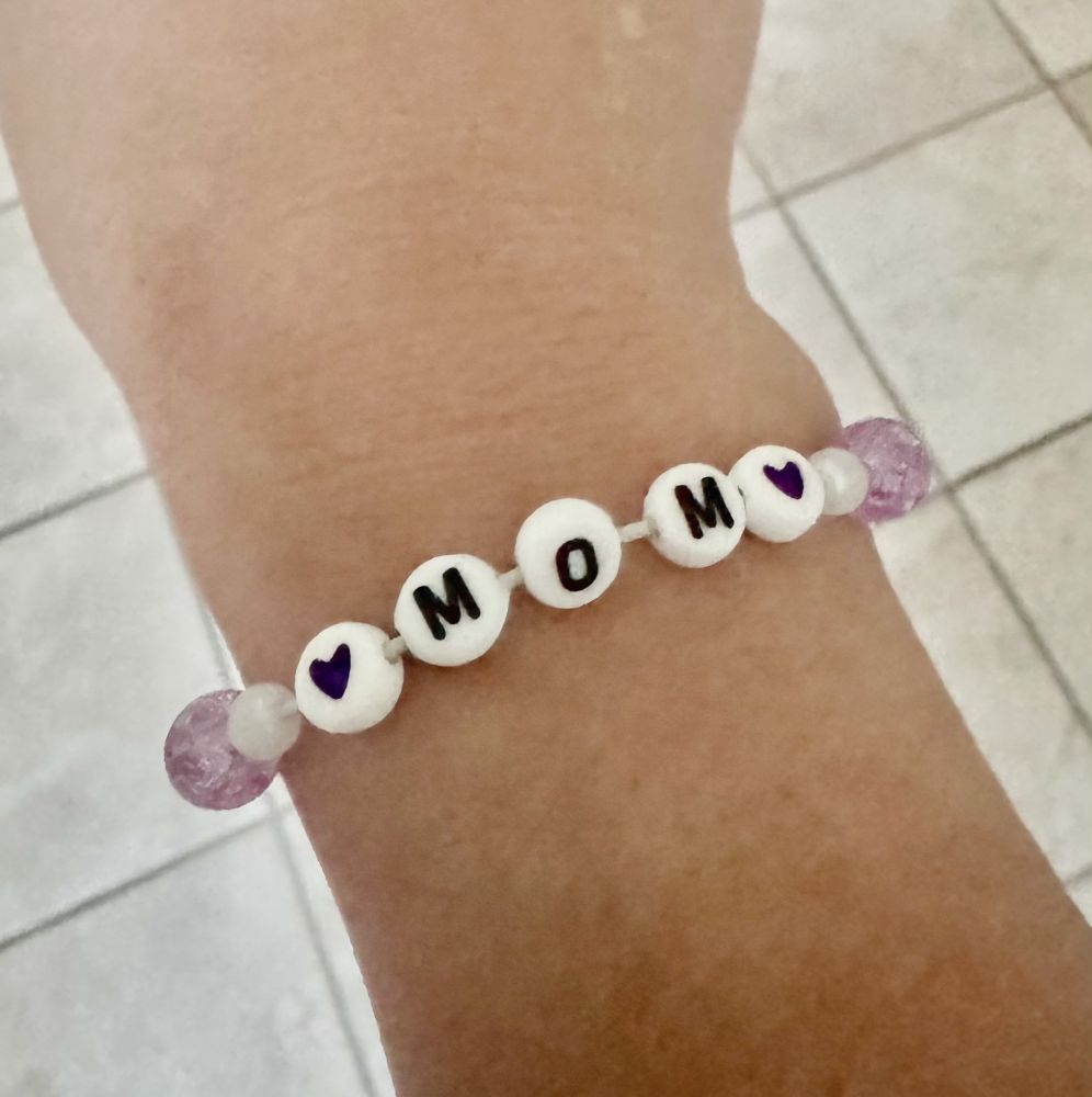 但是最珍贵的,还是爱美丽小同学给我做的手链。她给我做了一条mom的,我一直带着。