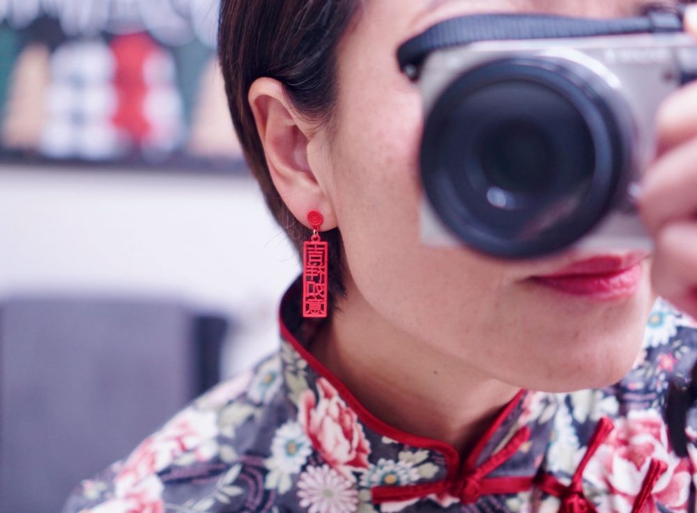买了一对喜气的中国风耳环,欢庆中国年