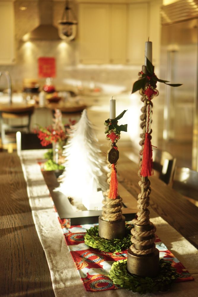 增加一点中国新年装饰。比起圣诞的红色,我们中国红带有橘色在里面
