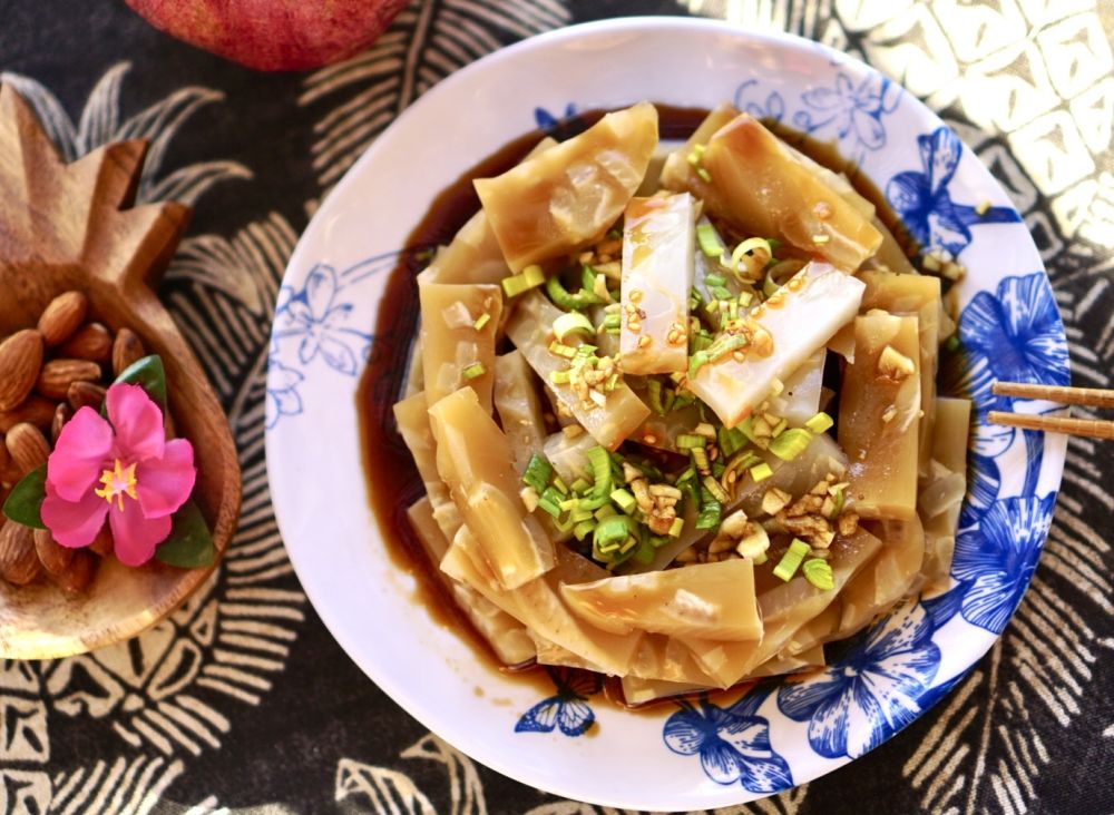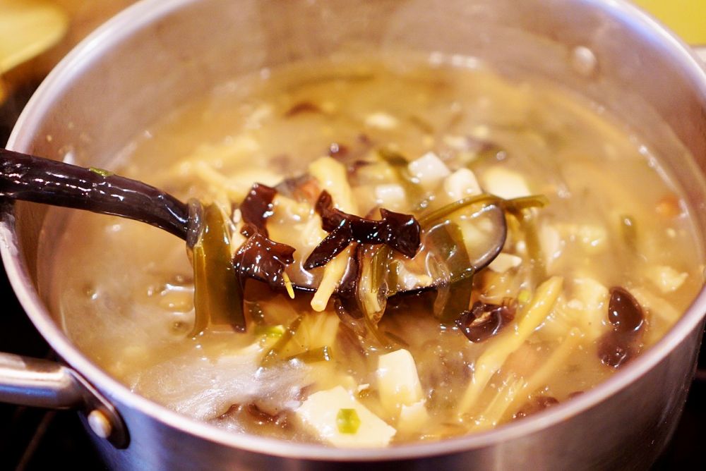 剩下的就简单了,各种传统配菜放高汤里煮,调味,再用洗出的面筋水沉淀后加汤里变浓稠。