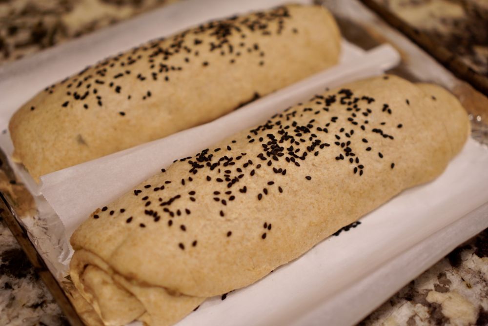最后是昨晚烤的中西合璧面包,内层是肉松跟巨多的葱酥,一半全麦粉。