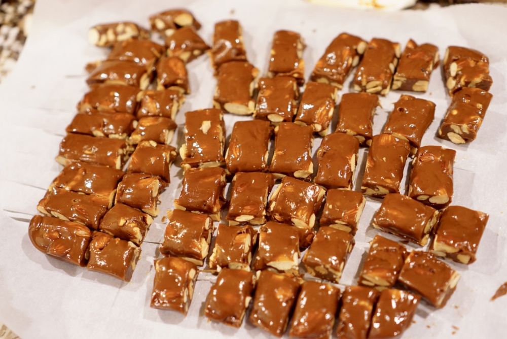 朋友自己做太妃糖,我觉得好好吃,不过瘾,赶快自己也试着做做。第一次做温度稍微过了点,焦糖的味道过一些,但仍然很好吃,口感也好,一点不粘牙,看着硬实际上是酥脆的。