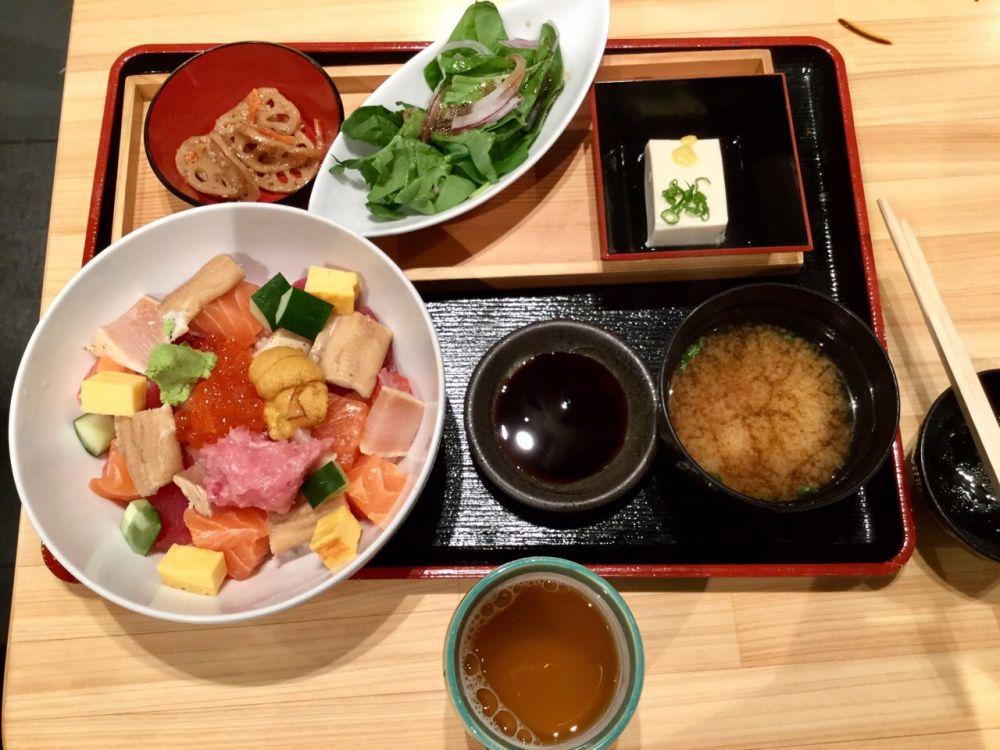 夏威夷日本餐馆巨多,我被一家日餐馆门口那碗海鲜寿司广告吸引,走进去独自在有空调的优雅房间里品尝了那一盘美味的日本菜,总共才$19美元!